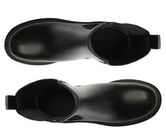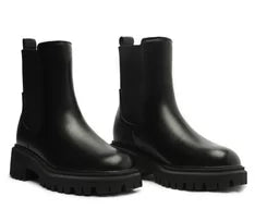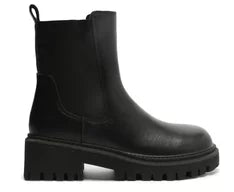 Bota Chelsea Cano Médio Tratorada Preta. Feita em material similar ao couro, com elástico na lateral facilitando o calce.