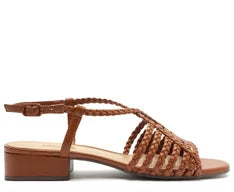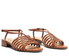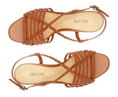 Sandália Fisherman Salto Bloco Trançada Marrom. O modelo tem salto em bloco baixo e bico redondo. Traz cabedal vazado com seis tiras fininhas e trançadas sobre os dedos, unidas por duas tiras laterais que se cruzam sobre os dedos, sobem até o peito do pé e contornam o calcanhar, com fecho em fivela metálica lateral. Com palmilha nude e assinatura Anacapri.
