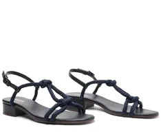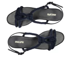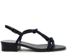 Sandália Anacapri de salto bloco preta. O modelo traz cabedal em tiras de corda natural colorida nas laterais, sobre os dedos e peito de pé, unidas por dois pequenos nós centralizados. De salto bloco baixo, possui fechamento em tira fina afivelada regulável, que contorna o calcanhar. De biqueira arredondada, traz palmilha acolchoada da mesma cor da rasteirinha e inscrição do nome da marca.