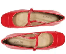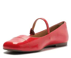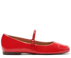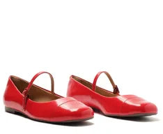 Sapatilha Boneca Bico Quadrado Verniz Vermelha. De solado emborrachado com leve saltinho e bico quadrado, traz cabedal com recorte reto sobre o peito do pé, formato ajustado nas laterais e biqueira vermelha em verniz. O modelo traz tira fina presa na lateral sob o peito de pé com fecho em fivela metálica ajustável. Com palmilha nude e assinatura Anacapri.