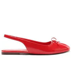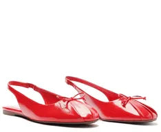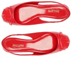 Sapatilha slingback em verniz, com aplicação de laço na biqueira, na cor vermelha. O modelo de material similar ao couro com acabamento envernizado, possui solado rasteiro emborrachado com leve saltinho e biqueira arredondada. Estilo slingback - aberta atrás, apresenta recorte arredondado no cabedal. Com detalhe delicado de lacinho aplicado na gáspea e acabamento franzido na biqueira.Traz tiras finas conectadas ao cabedal que seguem pelas laterais em elástico, contornando o calcanhar. Com palmilha acolchoada do mesmo tom da sapatilha e assinatura Anacapri, a sapatilha slingback deixa o peito do pé e calcanhar à mostra.