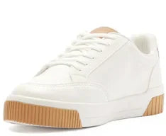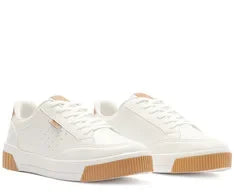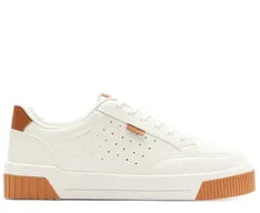 Tênis Sola Vulcanizada Furinhos Branco e Marrom. De sola alta flatform branca vulcanizada, o modelo apresenta design de perfuros nas laterais. De amarrar, com atacadores brancos, possui parte interna forrada em branco. Com aplicação de tag marrom lateral com inscrição do nome da marca.